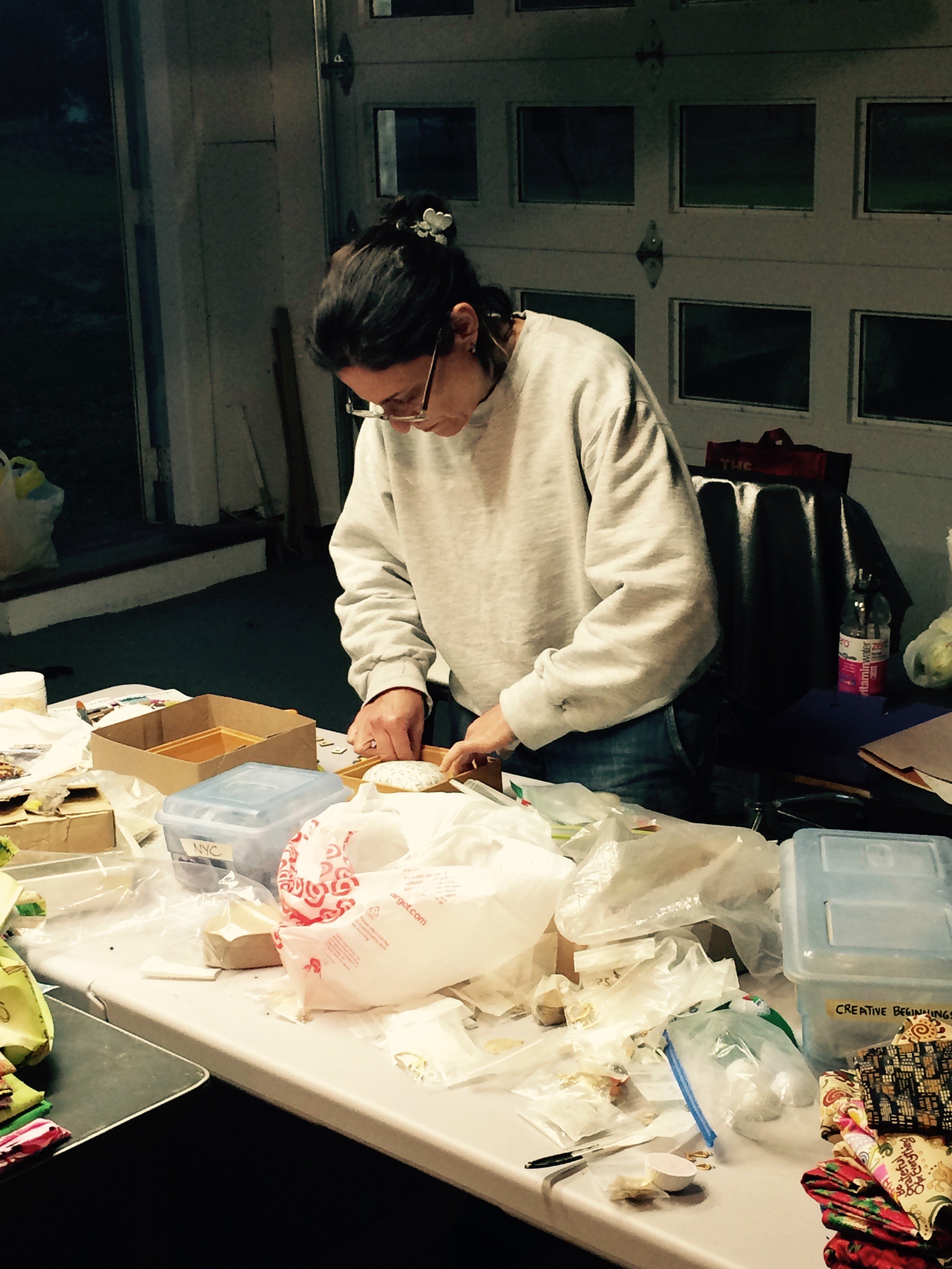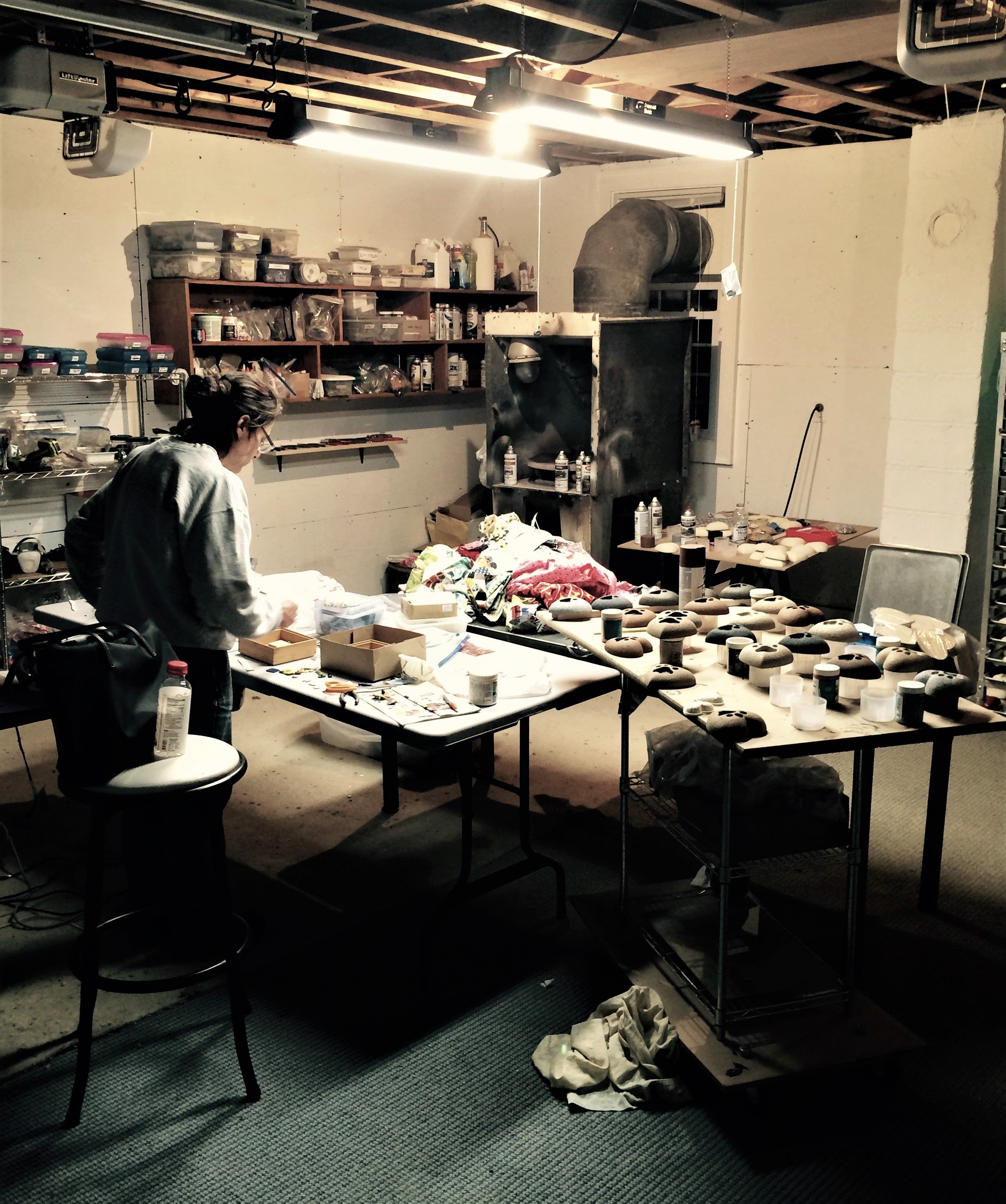 Here, Wendy is at work in the Bedford studio completing a custom artwork for a collector